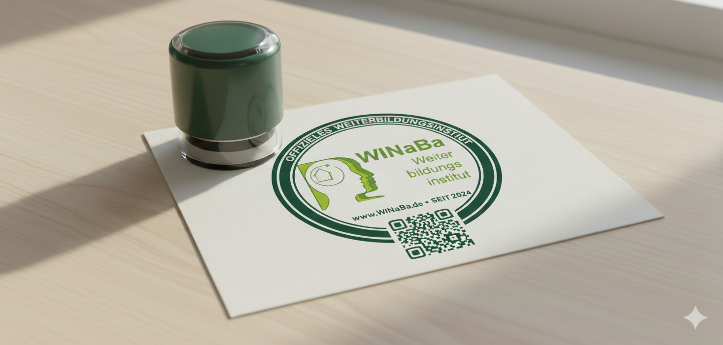 Im Anschluss an jedes WINaBa-Seminar erhalten alle Teilnehmer:innen eine offizielle Bestätigung / Zertifikat. In diesem bestätigen die Dozenten die vermittelten Inhalte sowie die erfolgreiche Teilnahme. Teilweise können einzelne Inhalte somit auch bei anderen Instituten angerechnet werden.