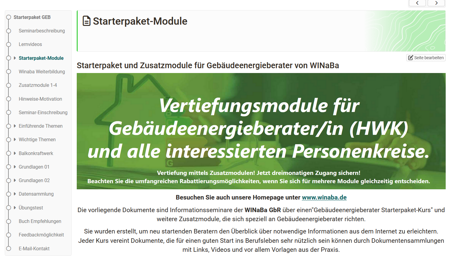 Die vorliegende Dokumente sind Informationsseminare der WINaBa GbR über einen“Gebäudeenergieberater Starterpaket-Kurs“